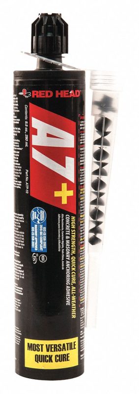 Compatible Material: Concrete, Compatible Anchor Size: 7/8 in, pa_icc-approved-for-un-cracked-concrete: yes, Includes: Mixing Nozzle, Mixing Ratio: 10:1, pa_ultimate-tension-strength-4000-psi-concrete: 63950-lb, Brand: RED HEAD, Compatible Anchor Type: Adhesive Anchors, Container Size: 9.11 fl oz, Container Type: Cartridge, Full Cure Time: 45 min, pa_icc-approved-for-cracked-concrete: yes, pa_maximum-performance-temperature: 110-f, pa_minimum-performance-temperature: 14-f, Resin Type: Acrylic, Anchor Type: Adhesive