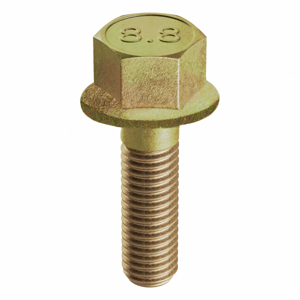 Minimum Thread Length: 12 mm, Head Width: 10 mm, Tensile Strength: 116,030 psi, Thread Style: Fully Threaded, Finish: Zinc Plated, Pack Size: Small Pack, Fastener Length : 12 mm, Dimensional Standards: DIN 6921, Flange Diameter: 14 mm, Head Height: 6.6 mm, Standards: DIN 6921