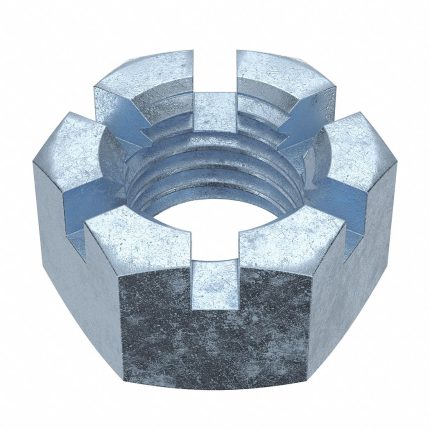 Castle Nut: Slotted Castle, 9/16″-12 Thread Size, Steel, Grade 2, Zinc Plated, 7/8 in Hex Wd, 25 PK