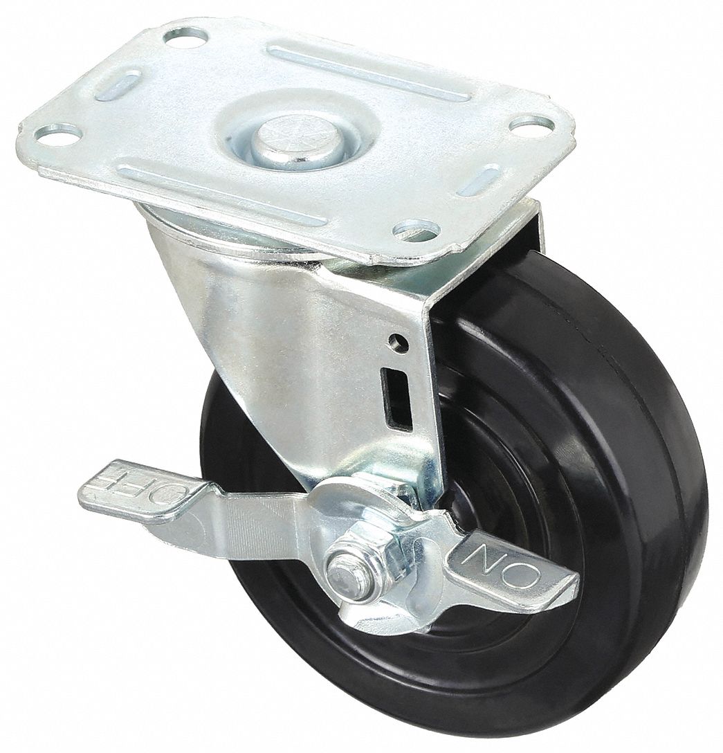 APPROVED VENDOR Plate Caster: Swivel, Rubber, 4 in Wheel Dia, 1 1/4 in Wheel Wd, Light Duty, Plain