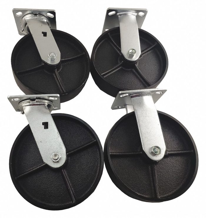 APPROVED VENDOR Plate Casters: Rigid/Swivel, No Brake, Iron, 8 in Wheel Dia, 2 in Wheel Wd, 4 PK