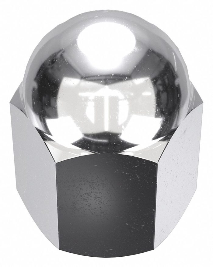 Cap Nut: 1/2″-13 Thread, Chrome Plated, Not Graded, Steel, 1.066 in Ht, 3/4 in Hex Wd, 5 PK