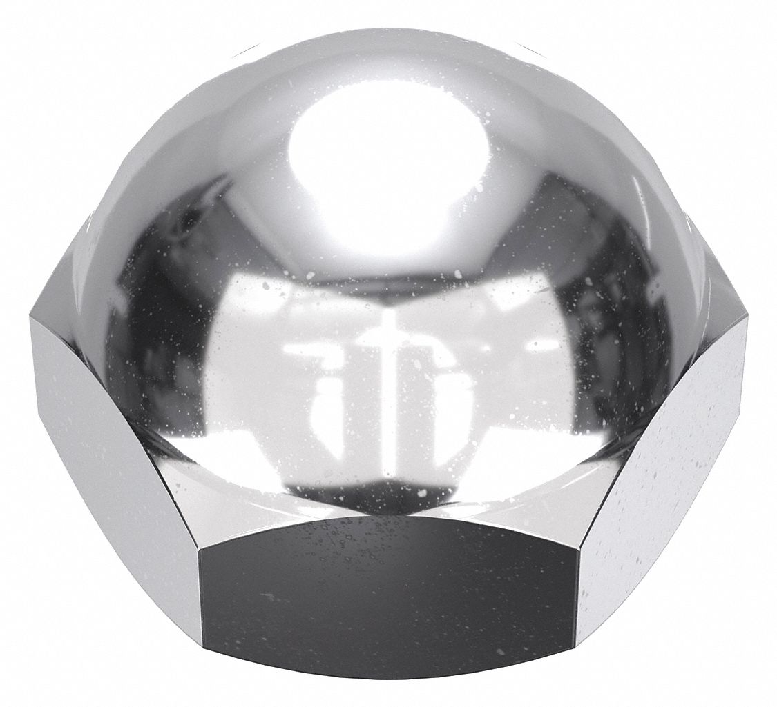 Cap Nut: 5/16″-24 Thread, Chrome Plated, Not Graded, Brass, 0.438 in Ht, 9/16 in Hex Wd, 10 PK