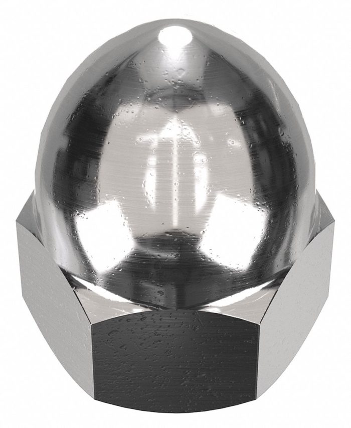Cap Nut: High Crown, 1/2″-13 Thread, Plain, 18-8, Stainless Steel, 1.031 in Ht, 3/4 in Hex Wd