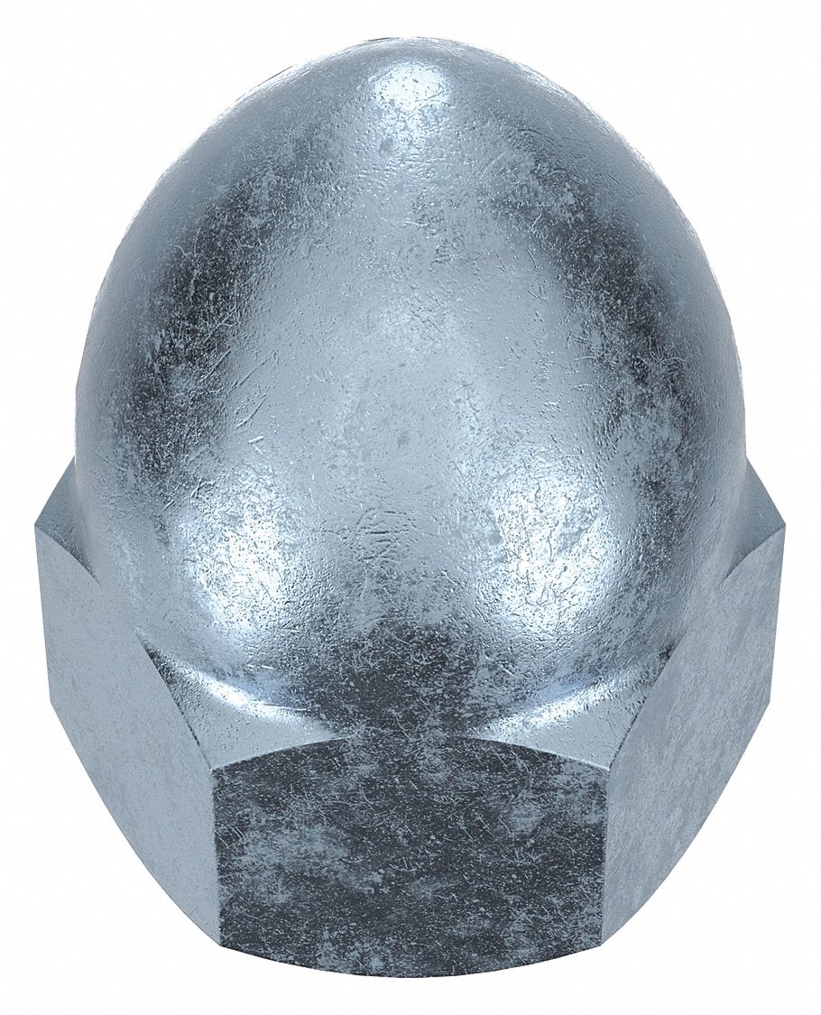 Cap Nut: High Crown, 1/2″-20 Thread, Zinc Plated, Not Graded, Steel, 1.031 in Ht, 3 PK
