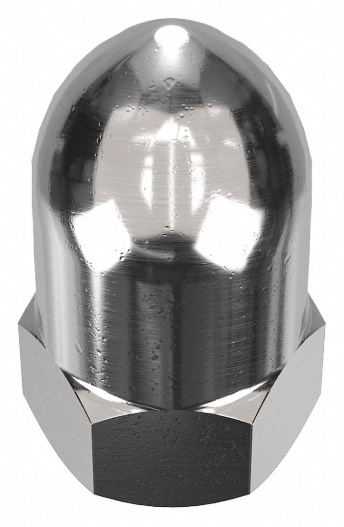 Cap Nut: High Crown, 3/8″-16 Thread, Plain, 18-8, Stainless Steel, 1.063 in Ht, 9/16 in Hex Wd