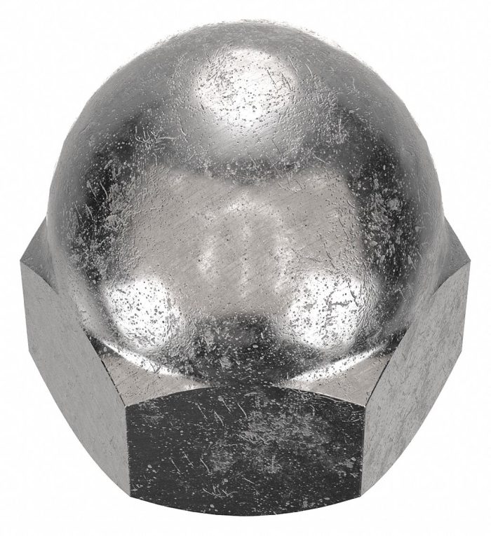 Cap Nut: Low Crown, 7/16″-20 Thread, Plain, 316L, Stainless Steel, 0.688 in Ht, 5/8 in Hex Wd, 5 PK