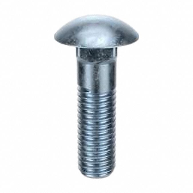 Carriage Bolt: Square, Steel, Grade 2, Zinc Plated, 3/8″-16 Thread Size, 3 in lg, Inch, 25 PK