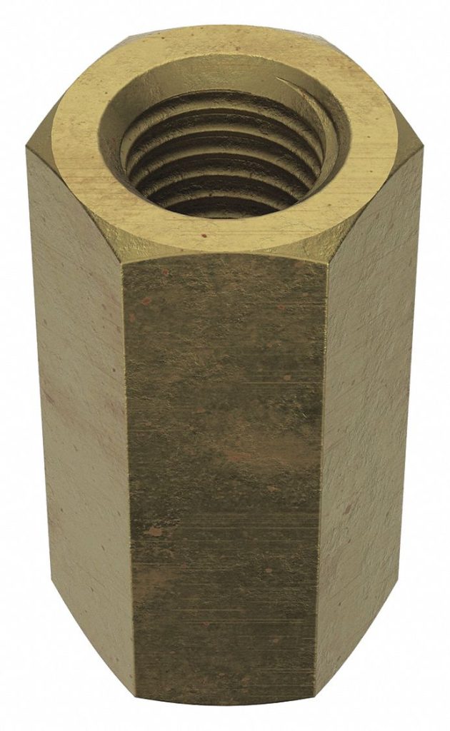 Material: Steel, Thread Style: Fully Threaded, Sight Hole: Yes, Finish: Zinc Plated, Material Grade/Class: Grade 2, Overall Length: 3 in, Thread Size: 1"-8, Hex Width: 1-1/2 in, Pack Size: Small Pack, System of Measurement: Inch, Thread Direction: Right Hand, Bolt Compatibility: Grade 2, Finish Type: Zinc Plated, Material Type: Steel