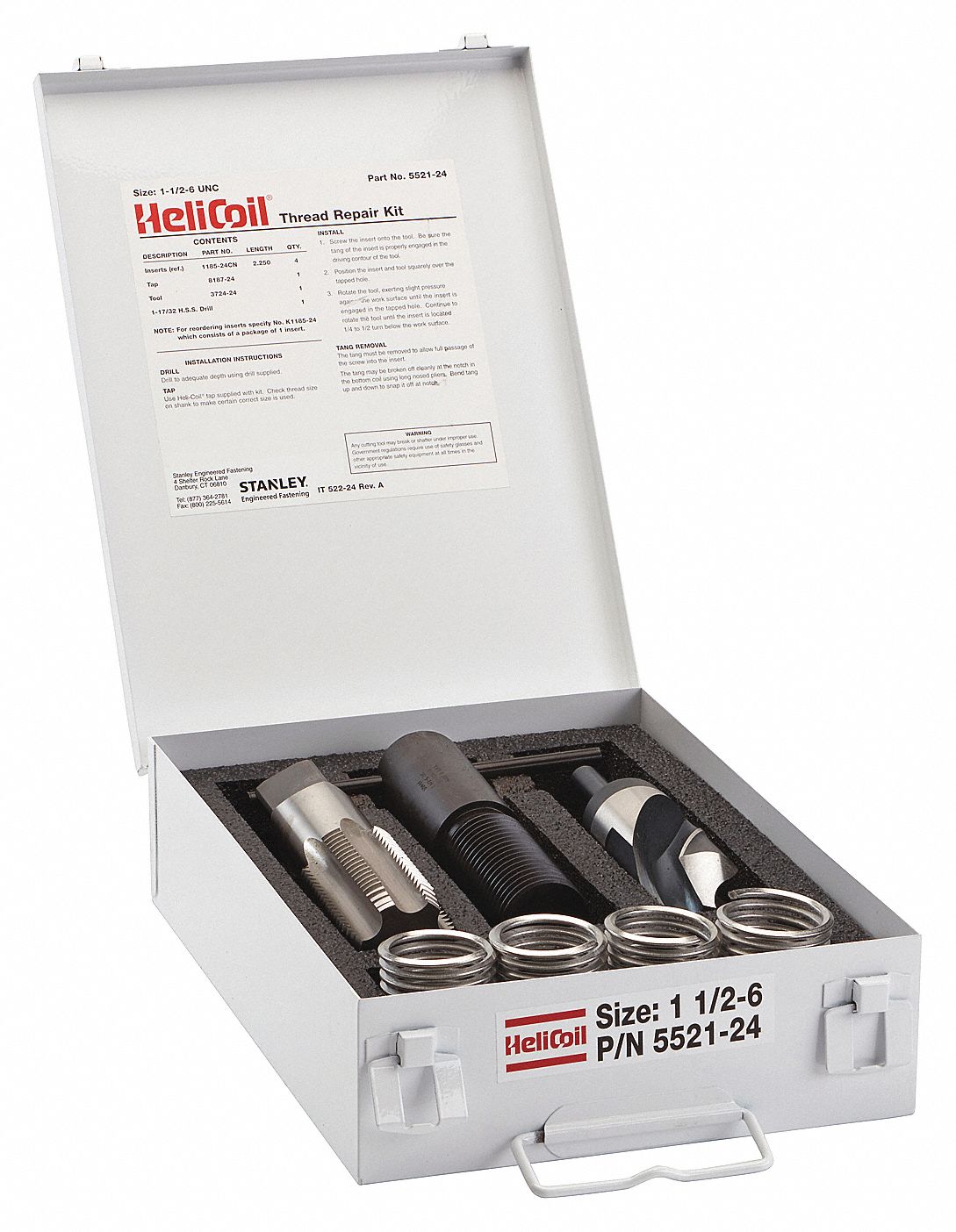 HELI-COIL Thread Repair Kit: Tanged Tang Style, Free-Running, 1 1/2″-6 Thread Size, Stainless Steel