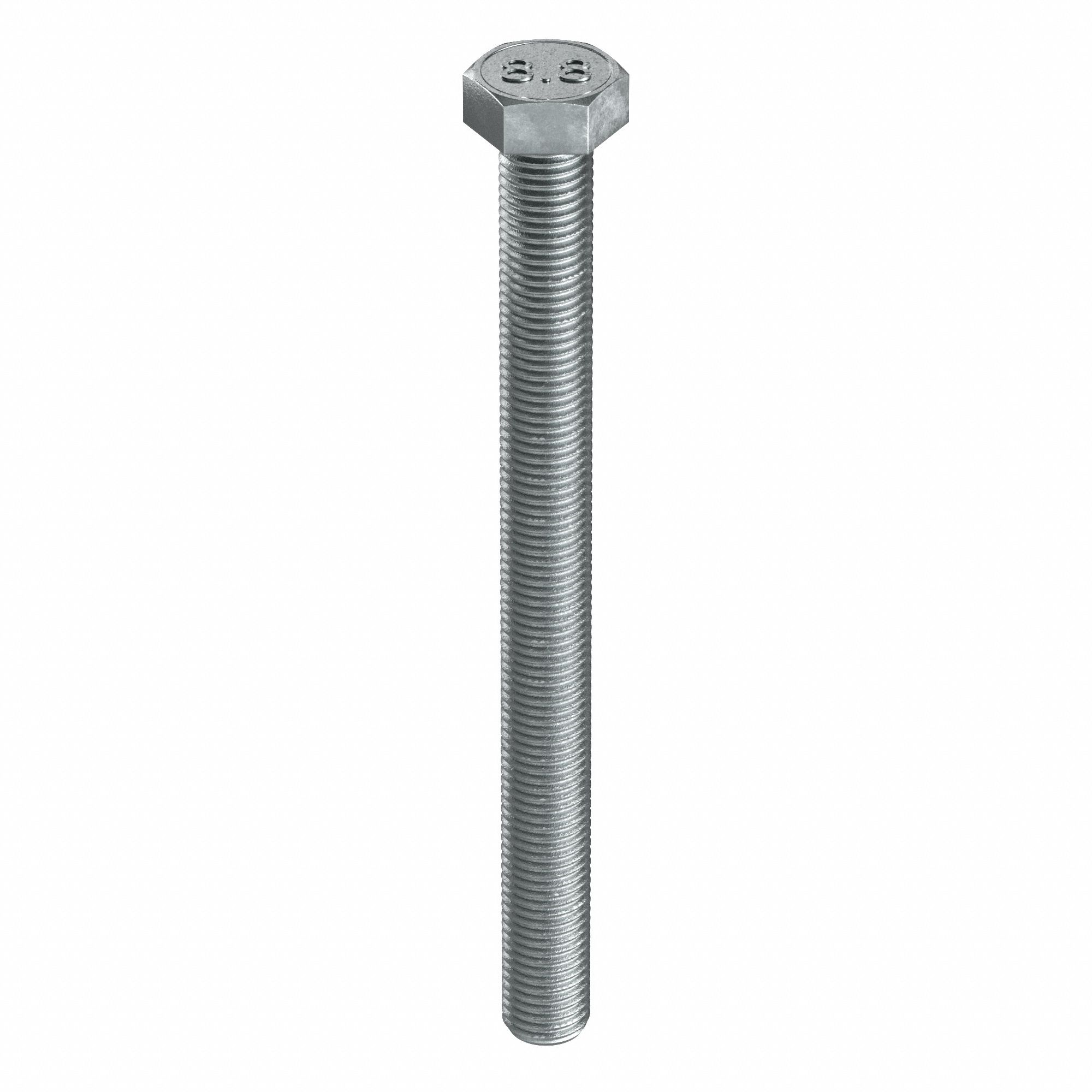 Hex Head Cap Screw: Steel, Class 8.8, Zinc Plated, M16-2.00, Coarse, 180 mm lg, Metric, HRC22, 10 PK