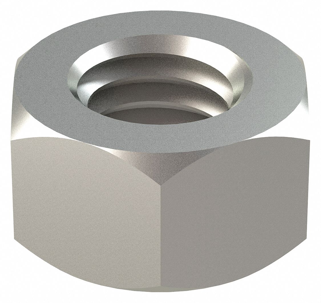 Hex Nut: 7/16″-14 Thread, 11/16 in Hex Wd, 3/8 in Hex Ht, Stainless Steel, 316, Plain, 25 PK