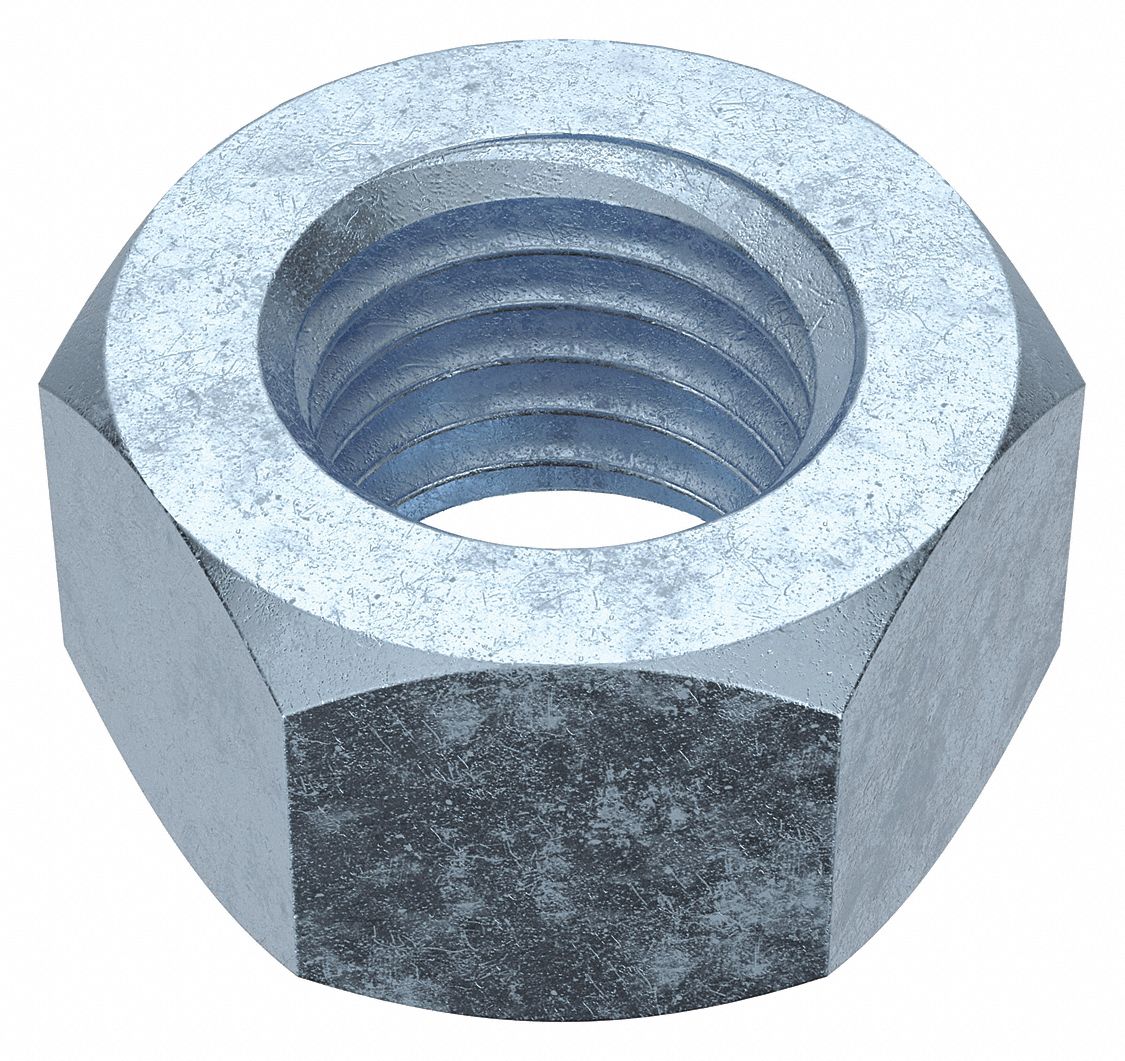 Hex Nut: 7/8″-9 Thread, 1 19/64 in Hex Wd, 3/4 in Hex Ht, Steel, Grade 5, Zinc Plated, 300 PK