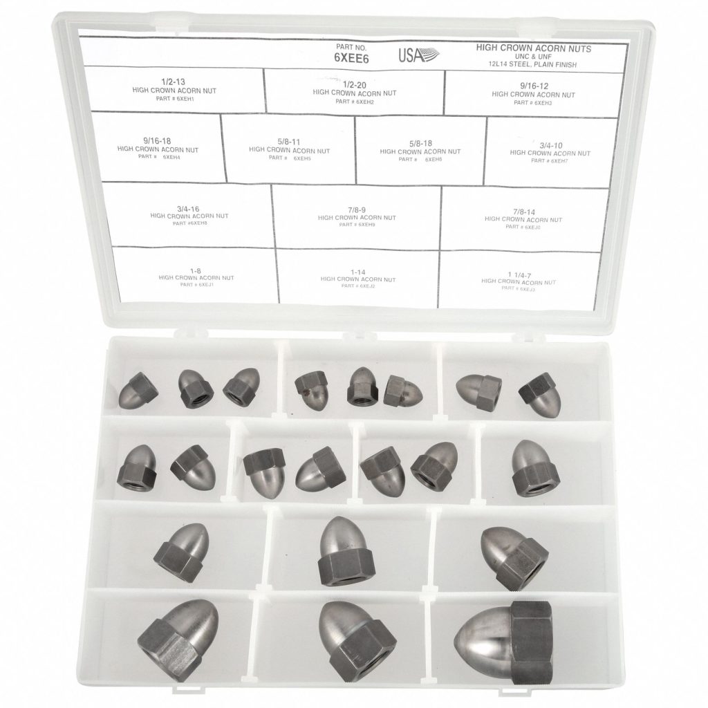 Material: Steel, System of Measurement: Inch, Number of Nuts: 216, Material Type: Steel, Includes Washers: No, Number of Thread Sizes: 12, Number of Washers: 0, Dimensional Standards: ASME B18.2.2