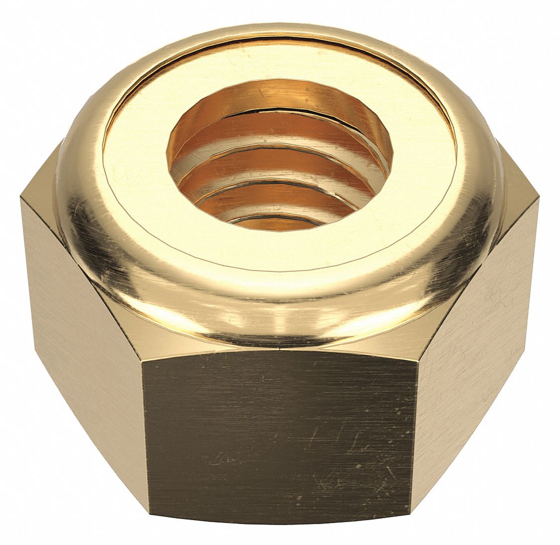 Lock Nut: Nylon Insert, 5/16″-18 Thread Size, Brass, Not Graded, Plain, 1/2 in Hex Wd, 25 PK