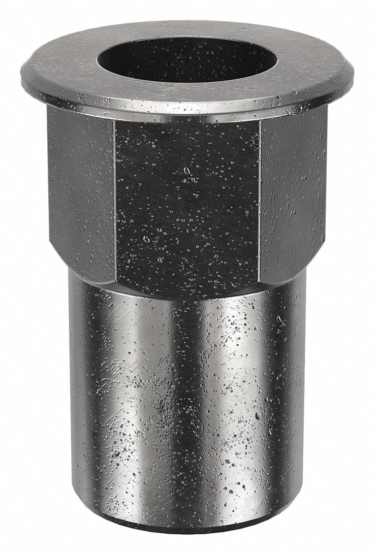 Rivet Nut: 1/4″-20 Thread Size, 23/32 in Overall Lg, 3/8 in Insert Dia, Hex, Steel, Steel, 40 PK
