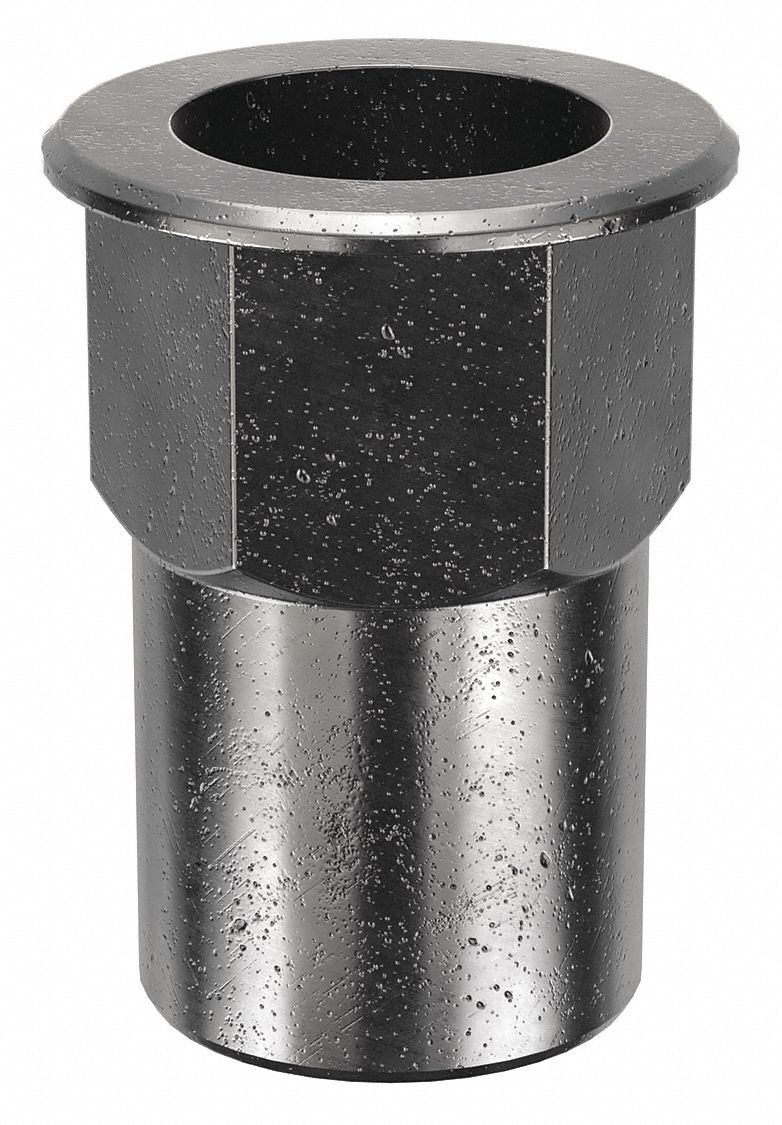 Rivet Nut: 3/8″-16 Thread Size, 7/8 in Overall Lg, 1/2 in Insert Dia, Hex, Steel, Steel, 20 PK