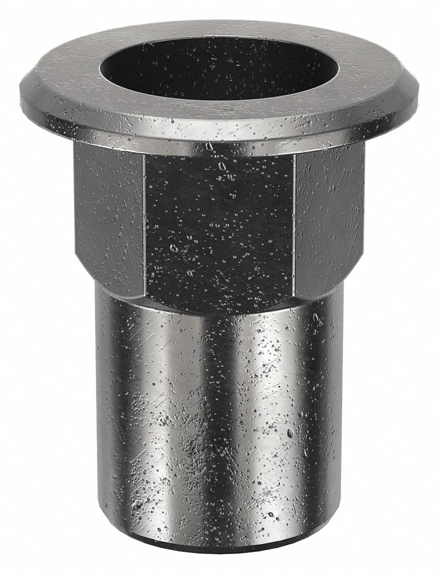 Rivet Nut: 5/16″-18 Thread Size, 11/16 in Overall Lg, 3/8 in Insert Dia, Hex, Steel, Steel, 10 PK