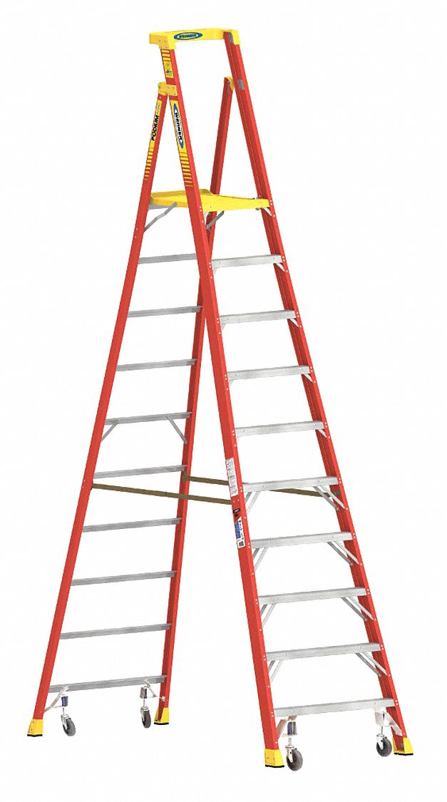WERNER Podium Stepladder: 12 ft Overall Ht, Fiberglass, 300 lb Load Capacity – Max, 64 lb Wt