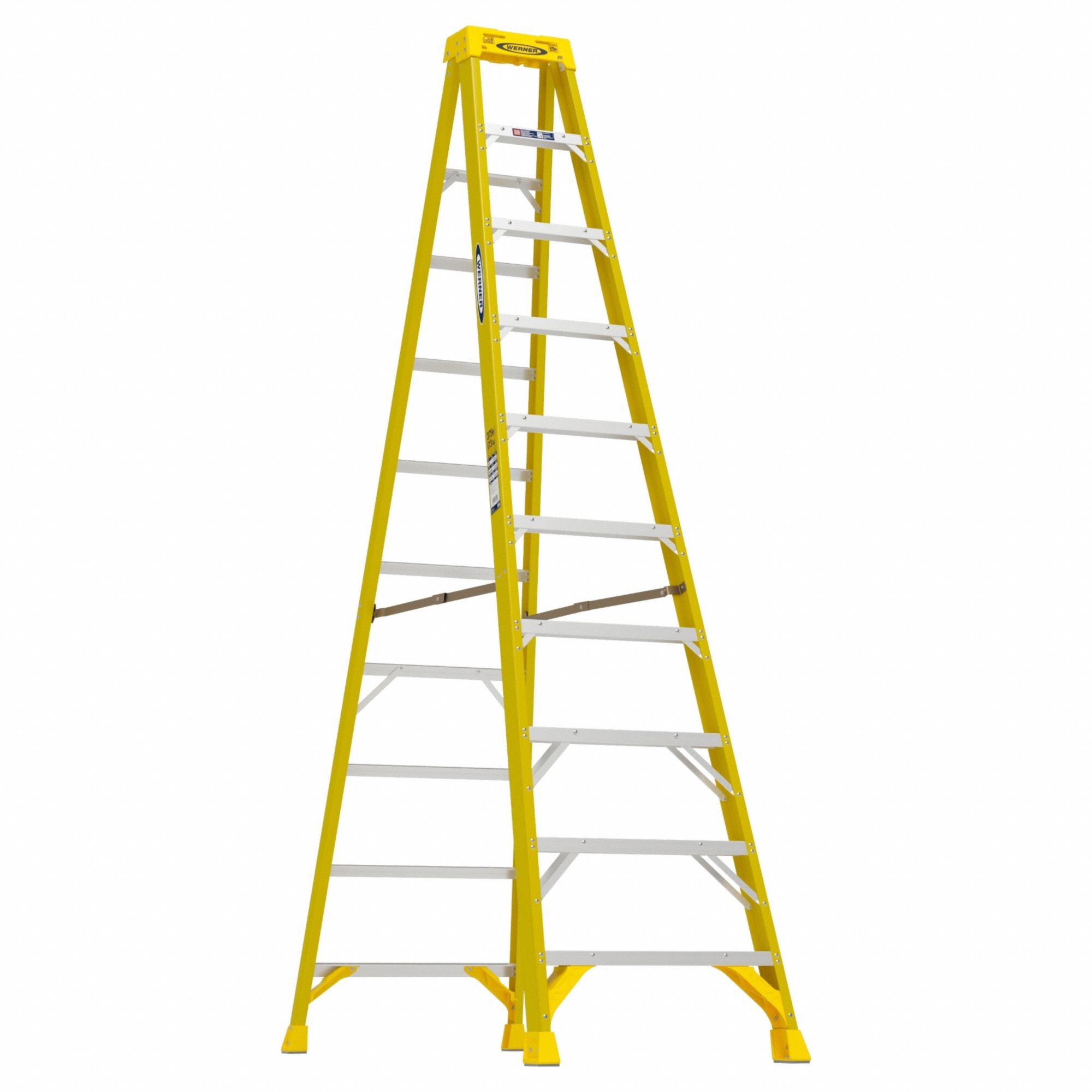 WERNER Stepladder: 10 ft Ladder Size, Fiberglass, 375 lb Load Capacity, 39 lb Wt, 7.7 ft Standing Ht