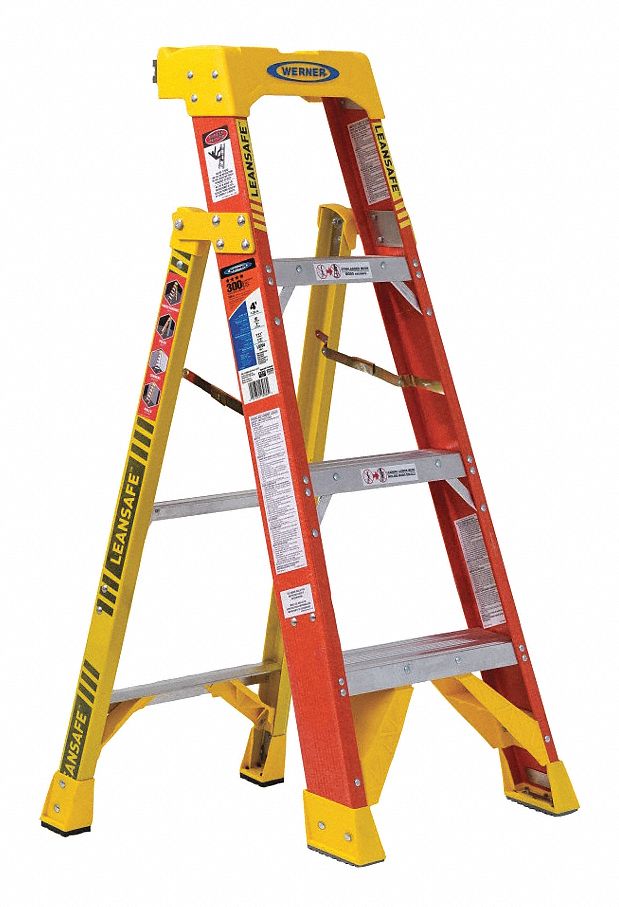 WERNER Stepladder: 4 ft Ladder Size, Fiberglass, 300 lb Load Capacity, 16 lb Wt