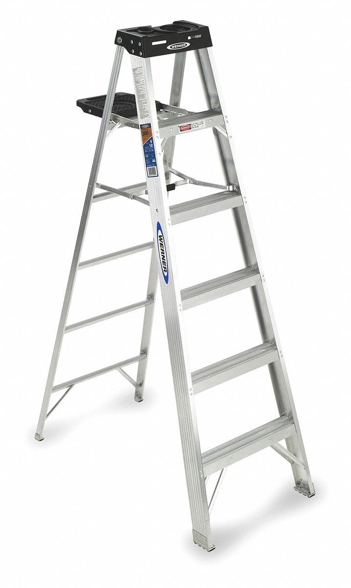 WERNER Stepladder: 6 ft Ladder Size, Aluminum, 300 lb Load Capacity, 16 lb Wt, 3.8 ft Standing Ht