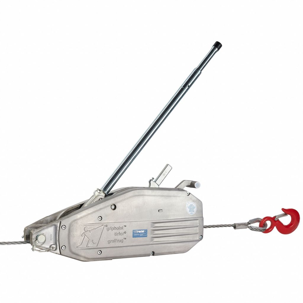 Brand: TRACTEL, Line Diameter: 5/16 in, Headroom: 20-1/2 in, Included Components: Wire Rope, Lever Length: 27 in, Hook Opening Width: 1 in, Lifting Capacity: 2,000 lb, Line Length: 30 ft, Pulling Capacity: 4,000 lb