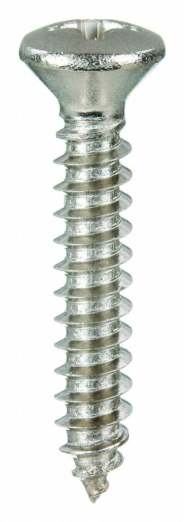 Dimensional Standards: ASME B18.6.3, System of Measurement: Inch, Point Type: AB, Finish Type: Plain, Head Type: Oval, Drive: Phillips, Head Width: 0.212 in, Head Height: 0.104 in, Screw Size: #4, Drive Size: #1, Pack Size: Small, Material: 18-8 Stainless Steel, Head Angle: 82 °, Finish: Plain, Fastener Length : 1 in