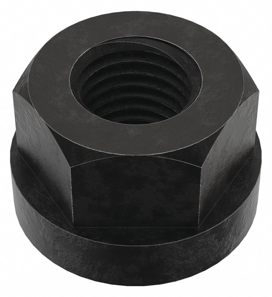 Hex Type: Swivel Flange Nut, Hex Width: 1-5/8 in, System of Measurement: Inch, Material Grade/Class: Not Graded, Finish: Black Oxide, Flange Diameter: 2 in, Hex Height: 49/64 in, Pack Size: Small Pack, Material: Steel, Thread Size: 1"-8, Bolt Compatibility: Grade 2, Material Type: Steel